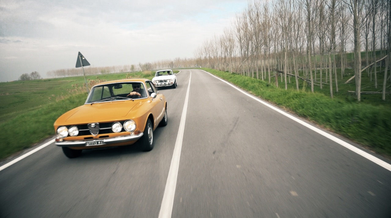 In velocità non c’è confronto tra la Giulia Veloce del nostro tempo e le storiche 1750 GT Veloce e 2000 GT Veloce incontrate lungo il percorso. Ma le note vocali prodotte dalla ruggente versione giallo ocra del 1969, sono disarmanti per l’animo e il cuore. È lecito ribadire l’assenza di paragoni, non può esserci. Ogni innesto e accelerazione ridanno voce a una sapienza lontana. Una cultura che emoziona, che rimanda a un altro periodo, a un altro modo di viaggiare che qualcuno ancora invidia. Un tempo con i propri grandi limiti, mancavano infatti certi dispositivi importantissimi per la sicurezza stradale, ma non ve ne erano altri così condizionanti per lo stile di vita, come avviene oggi. Spazio alla danza degli indicatori analogici, al cocente respiro dei quattro cilindri, al vulcanico solfeggio della 1750 GT Veloce o al suono più smorzato della 2000 GT Veloce del 1971, nonostante vanti una potenza superiore.