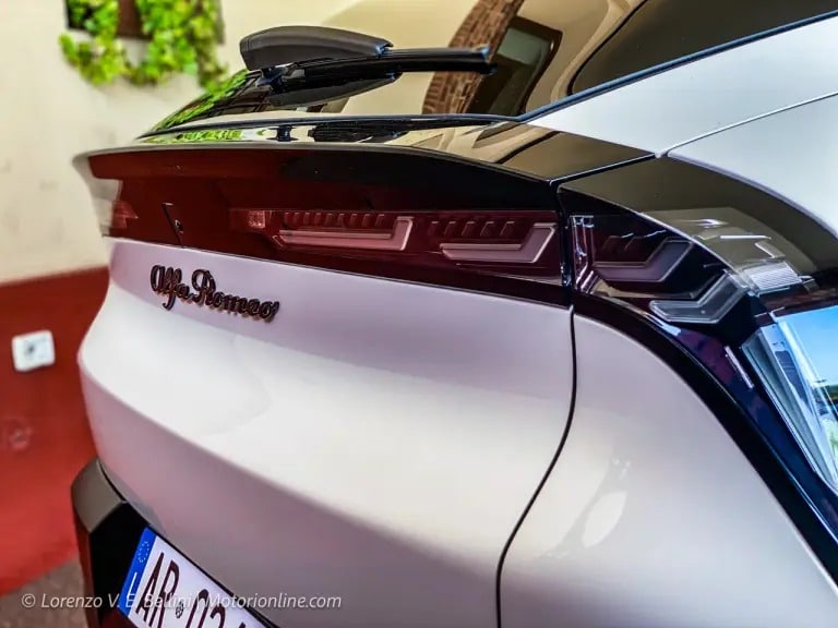 Gli interni dell’Alfa Romeo Junior sono realizzati con materiali di qualità, come pelle e Alcantara. Anche quando si tratta di elementi meno pregiati, non si scende mai sotto alla gomma soft-touch o della plastica di alta qualità e senza scricchiolii. Il quadro comandi, completamente digitale, è racchiuso nell’iconica cornice a binocolo, mentre il sistema di infotainment si trova su un pannello flottante da 10,25 pollici, compatibile con Apple CarPlay e Android Auto wireless. Sul tunnel centrale troviamo l’interruttore per il cambio automatico monomarcia (essendo puramente elettrica) e il pulsante per il cambio della modalità di marcia, tutto ripreso da altre vetture del gruppo Stellantis. Nonostante la sua natura più sportiva, lo spazio a disposizione rimane lo stesso delle versioni meno estreme, con spazio per quattro passeggeri comodi e, volendo, anche un quinto. Il bagagliaio parte da 400 litri, grazie al buon posizionamento della batteria (per la versione elettrica), e arriva fino a 1280 litri se si abbattono i sedili posteriori.
