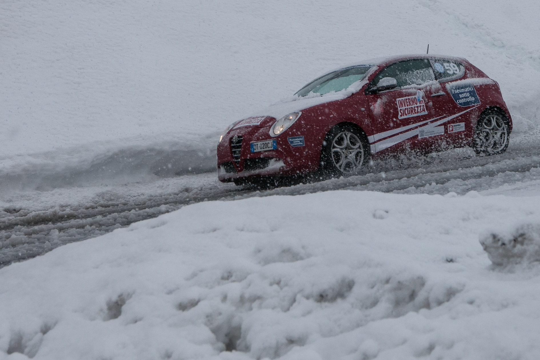 Un test con tre Alfa Romeo Giulietta ha dimostrato che sulla strade d’inverno anche un set di gomme invernali usate offrono prestazioni maggiori in termini di sicurezza e aderenza rispetto agli pneumatici estivi nuovi. L’importanza dell’omogeneità dell’equipaggiamento invece è stata testata attraverso il confronto tra tre Abarth 500, una con gomme invernali, una con gomme estive e una con gomme miste (due invernali all’asse trattivo anteriore e due estivi al posteriore). Solo l’Abart 500 con quattro pneumatici invernali si è mostrata completamente affidabile sul fondo ghiacciato.