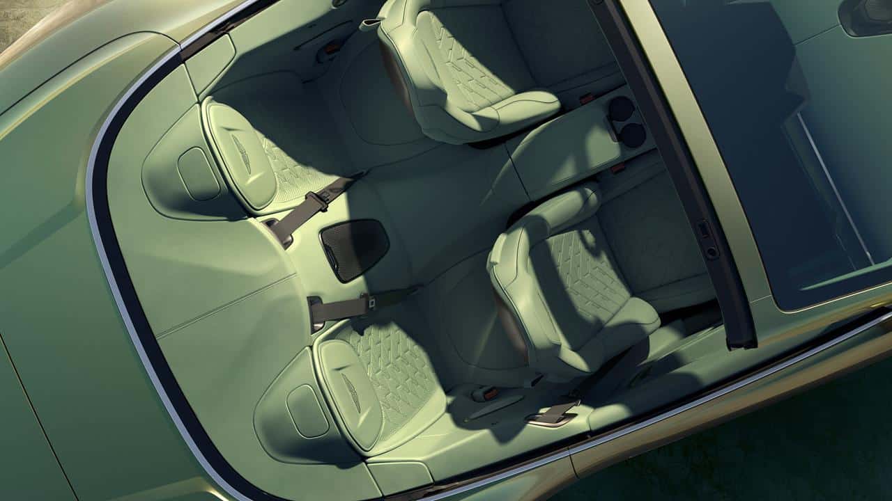 Relativamente agli interni, oltre al layout 2+2, la gamma si rinnova con l’ingresso dell’allestimento Inspire Tritone, che sostituisce l’Inspire Sport, oltre al debutto della scritta “Vanquish” ricamata sui poggiatesta, l’ampliamento delle opzioni decorative con le ali Sculpted Wings, mentre i sedili Carbon Performance si arricchiscono del badge Wings in silicone nero. Novità anche per quanto riguarda i pacchetti delle finiture in carbonio, con l’aggiunta di quattro nuove tonalità (Blue, Orange, Lime e Racing Green) e la disponibilità, per tutti i pacchetti interni in fibra di carbonio, del wordmark Aston Martin in lamina.