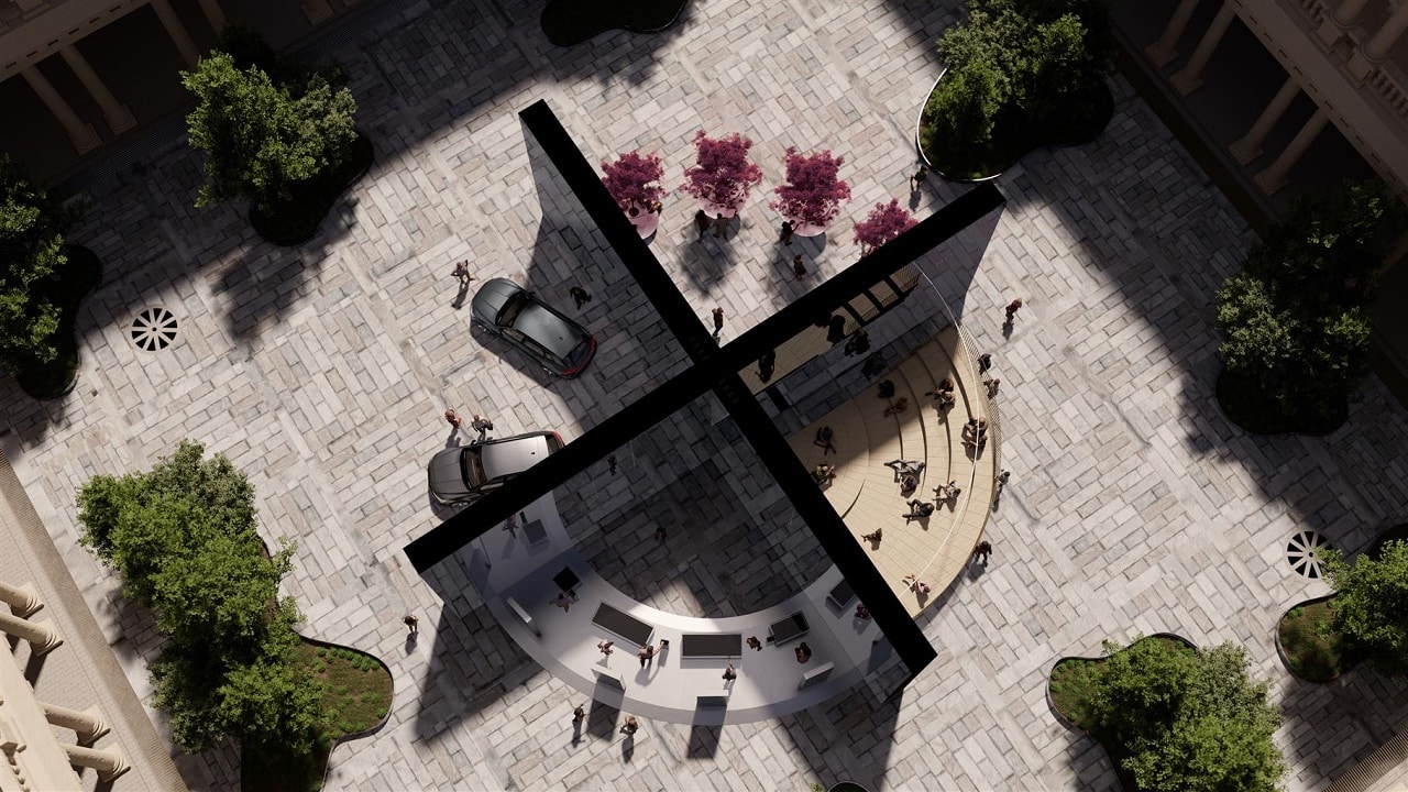 Come dimostrazione dell’impegno di Audi, l’installazione di design situata nella piazza del Quadrilatero è stata concepita per il marchio dallo studio internazionale BIG – Bjarke Ingels Group, con otto sedi distribuite in tutto il mondo. L’installazione “Reflaction”, una combinazione delle parole “riflessione” e “azione”, si propone come un invito a contemplare come ogni azione individuale rifletta l’essenza stessa della persona e sia un riflesso della sua esistenza, lasciando un’impronta per le generazioni future. Sfruttando gli effetti di riflessione e rifrazione, due alte pareti specchiate si intersecano in modo simmetrico, dividendo il centro della piazza di Portrait Milano in quattro parti.