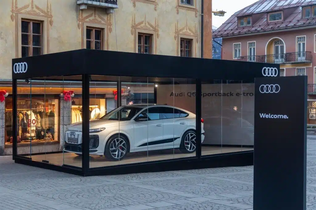 Oltre ai touchpoint, dove poter vedere dal vivo le nuove vetture, il brand dei Quattro Anelli è presente nell’iconico e centrale Hotel de La Poste di fianco a Piazza Roma. Camminando fra le strade cittadine, il pubblico inoltre può incontrare altre testimonianze della presenza Audi, come le Audi Digital Island. Si tratta di un arredo urbano costituito da installazioni digitali presenti fra le vie della località che offrono punti di ricarica per e-bike e dispositivi mobili.