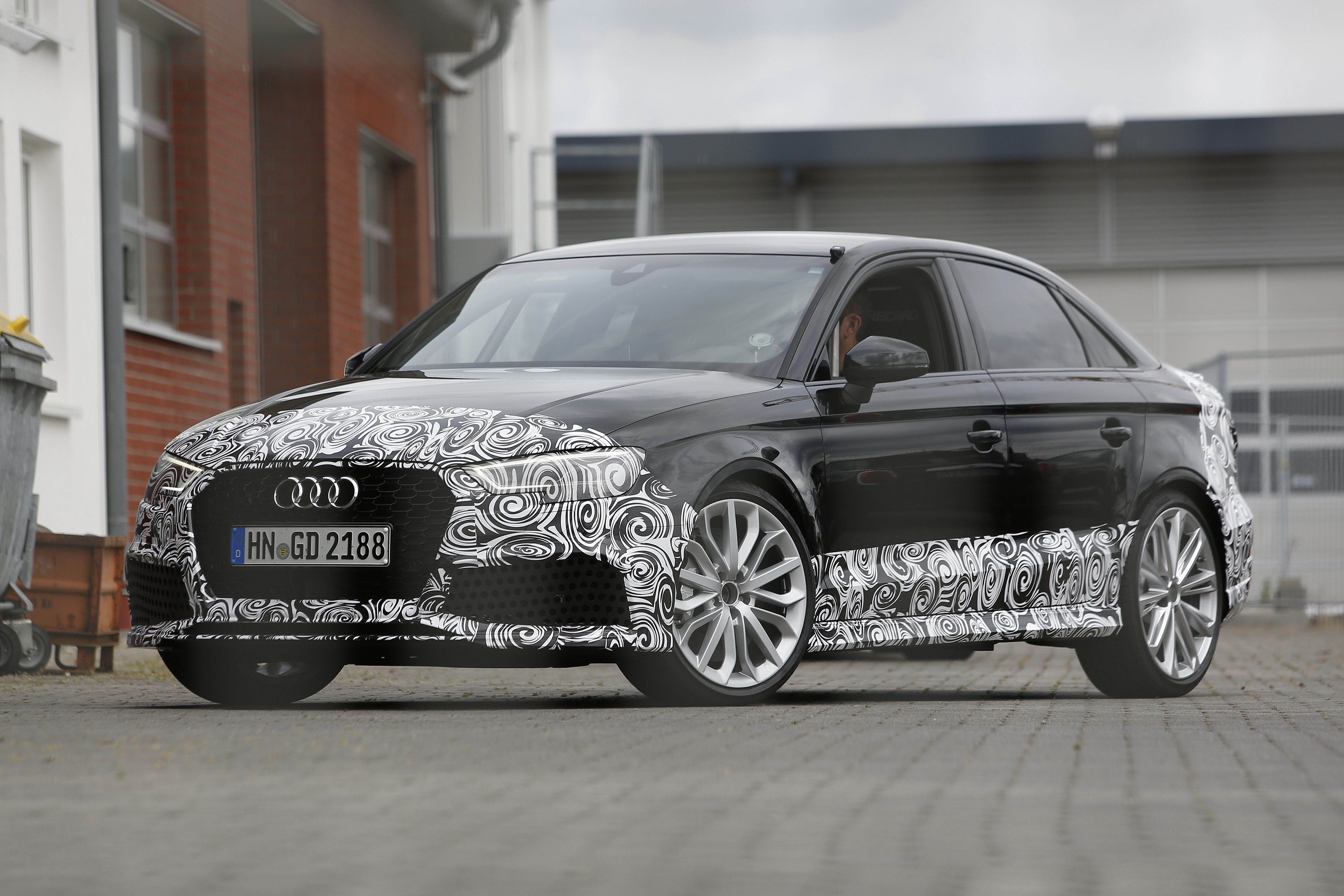 Audi RS3 Sedan – Dopo aver ristilizzato circa tre mesi fa l’intera gamma A3 di cui vi avevamo parlato in un nostro precedente articolo, Audi spinge sull’acceleratore e punta sulle versioni firmate “RS”. Quella che vedete nella foto è la nuova Audi RS3 Sedan che è stata fotografata nel corso degli ultimi test drive: come si può vedere le camuffature interessano soltanto la parte frontale e posteriore, ma sono ridotte al lumicino e per questo lasciano già intravedere il futuro aspetto definitivo.