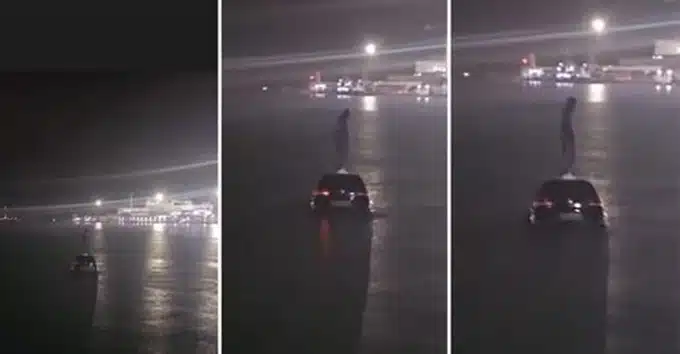 Bari, auto in mare al porto: il conducente si salva sfondando il parabrezza e salendo sul tetto [VIDEO]