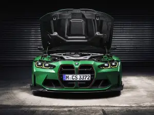 Per ottenere un peso più contenuto, la vettura utilizza i sedili M Carbon di serie e un silenziatore posteriore in titanio, che permette di alleggerire di oltre 4 kg l’impianto di scarico rispetto alla M3 Competition xDrive. Grazie a queste e ad altre soluzioni di design leggero, il bolide stradale presenta un risparmio di peso totale di circa 20 kg.