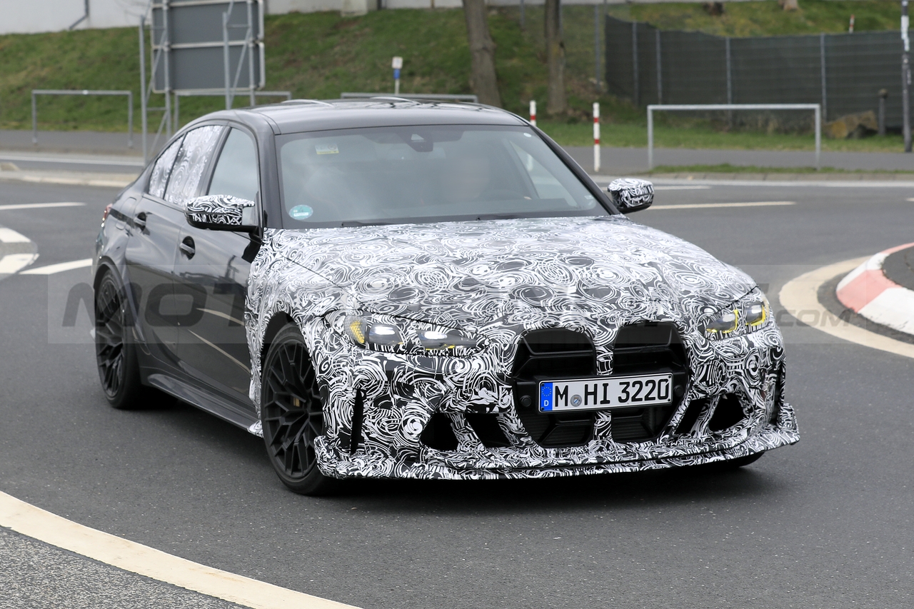 Tuttavia, un nostro fotografo ha avvistato su strada un muletto quasi completamente camuffato che rivela alcune interessanti informazioni sulla presunta BMW M3 CSL. In particolare, la parte frontale è stata ripresa dalla M4 CSL.