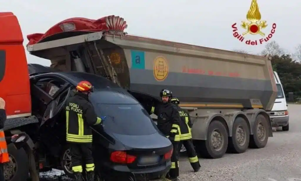Un curioso incidente si è verificato nel pomeriggio di lunedì 8 aprile 2024 in prossimità di Thiene, a Sarcedo. Una BMW è finita tra la cabina di un camion e il suo semirimorchio, dopo aver urtato il cordolo della strada. Secondo le prime informazioni disponibili sull’incidente, sembra che il conducente della vettura della casa tedesca abbia urtato un cordolo, causando il sollevamento dell’auto in aria e portandola in una situazione estremamente pericolosa tra la cabina del camion e il suo semirimorchio.