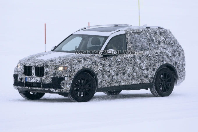 BMW X7 – Circa due mesi fa vi mostrammo le prime immagini del nuovo Suv extra large firmato BMW. In quell’occasione però i nostri fotografi riuscirono a fotografare soltanto un esemplare estremamente camuffato di X7 sopra una bisarca in attesa di essere portato chissà dove. Oggi invece siamo stati più fortunati perchè la nostra squadra di fotografi non solo è riuscita ad immortalare un muletto della futura X7, ma è anche riuscita a girare un video che riprende l’inedito Suv alle prese coi test drive sul fondo parecchio innevato della Lapponia.