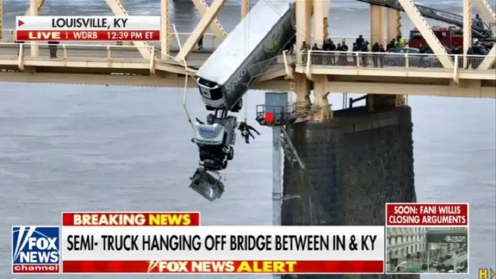 Camion in bilico su un ponte in Kentucky: spettacolare salvataggio dell’autista [VIDEO]