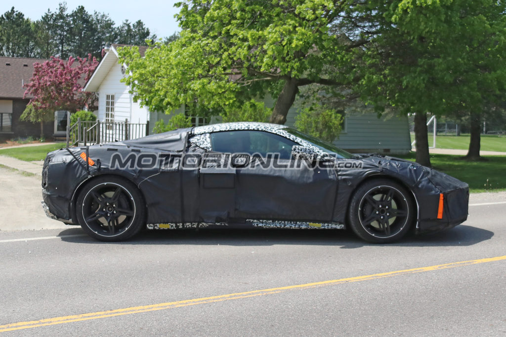 Ma cosa si nasconderà sotto il cofano, o per meglio dire, dietro i sedili? A tal riguardo restano in piedi ancora diverse ipotesi, ma tra le più accreditate ci sono quelle che segnalano l’utilizzo di un V8 6.2 LT1 o di un V8 4.2 twin turbo che per l’occasione sarebbero abbinati ad un cambio automatico DCT a doppia frizione. Attorno all’inedito propulsore montato in posizione centrale, Chevrolet provvederà a realizzare una carrozzeria completamente nuova: le foto spia allegate nella nostra galleria immagini ci restituiscono l’idea di un corpo vettura dalla silhouette molto sinuosa e dalle proporzioni leggermente diverse da quelle della C7 odierna proprio per via della diversa disposizione del motore.