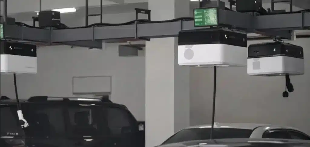 È una soluzione utilizzabile, almeno ora, solamente per parcheggi al coperto. Infatti, serve una guida montata sul soffitto, dove l’unità robotica può scorrere per raggiungere il veicolo che deve essere ricaricato. L’utente, tramite app o QR code, richiede la ricarica al terminale centrale e seleziona il posto dove è parcheggiata l’auto. A quel punto, il robot si dirige verso il veicolo, tramite il binario sul soffitto, e abbassa un connettore, da connettere alla porta di ricarica.