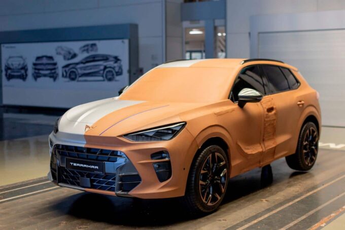 Il mock-up completamente a vista, color terra, della Cupra Terramar è stato realizzato con oltre 5.000 kg di argilla, accuratamente fresate e poi lucidata a mano, definendo ogni dettaglio della superficie con precisione millimetrica. “Le proporzioni sono essenziali nei nostri modelli. Le definiamo nei bozzetti che realizziamo ma le possiamo apprezzare davvero solo nelle repliche fisiche in argilla”, sottolinea il designer.