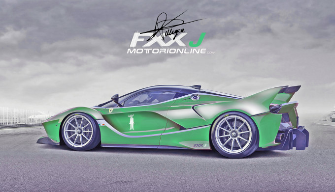 Nel progetto di Pelligra l’hypercar della Casa della Maranello abbandona la “classica” veste in rosso Ferrari con dettagli in bianco e nero, con la quale l’abbiamo potuta apprezzare dal momento del debutto fino all’esibizione sulla pista di Yas Marina ad Abu Dhabi, per indossare una speciale carrozzeria in verde con grafiche in bianco e ribattezzarsi col nome di FXX J. La “J” al posto della “K” in omaggio a Jamiroquai, ed in particolare al cantante Jay Kay, appassionato ferrarista che qualche tempo fa si è regalato una LaFerrari speciale personalizzata in verde, sia dentro che fuori.