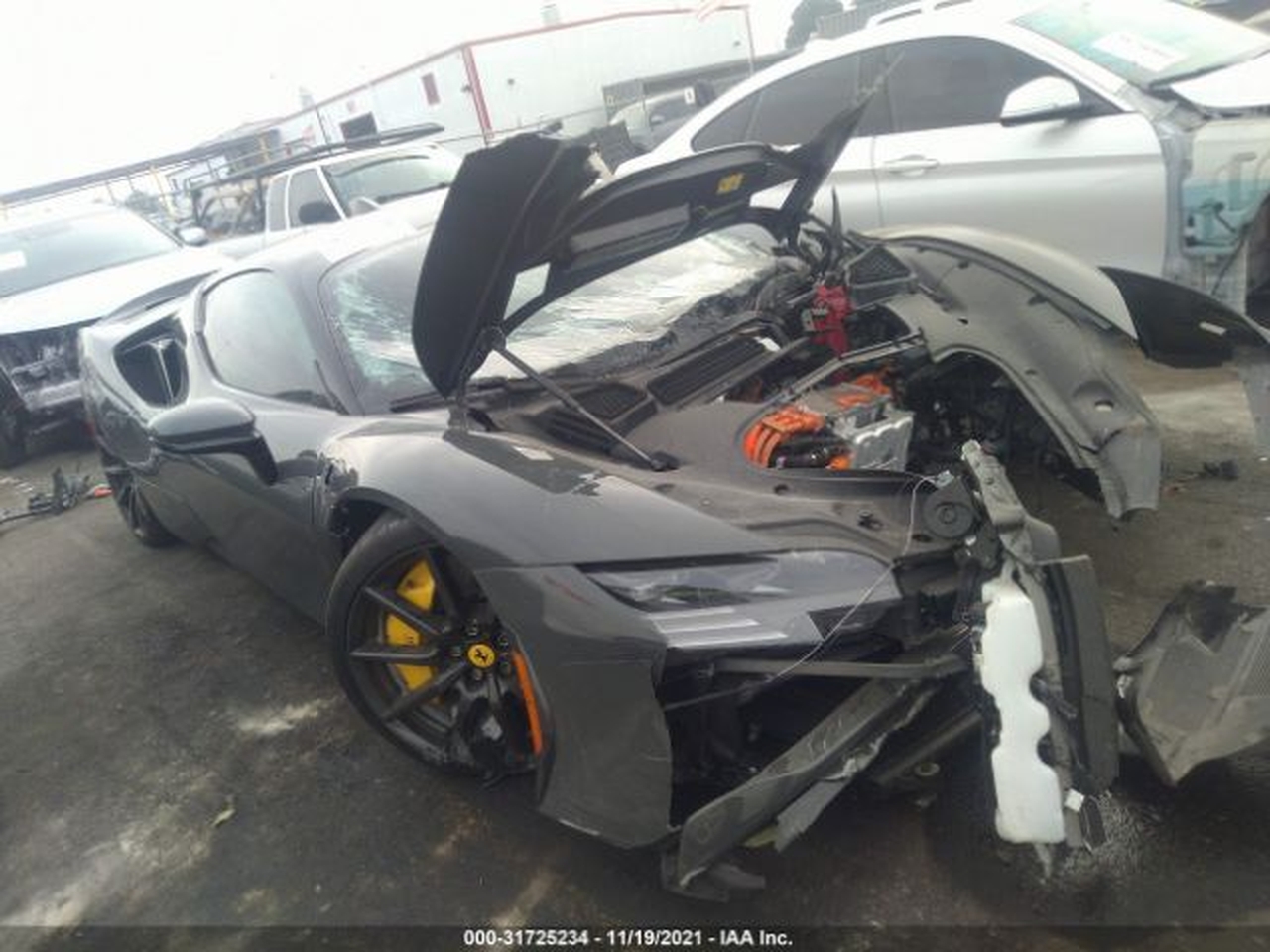 Come è possibile vedere nelle foto, la parte anteriore è quasi praticamente inesistente. Ad esempio, manca un faro, il paraurti è praticamente distrutto, il cofano è diviso a metà e ci sono alcuni danni evidenti ai sistemi di raffreddamento ed elettrico. I danni a questa Ferrari SF90 Stradale proseguono sul profilo laterale e sul retro. L’unico aspetto positivo è che l’esemplare pare abbia il tanto richiesto pacchetto Assetto Fiorano disponibile come optional.