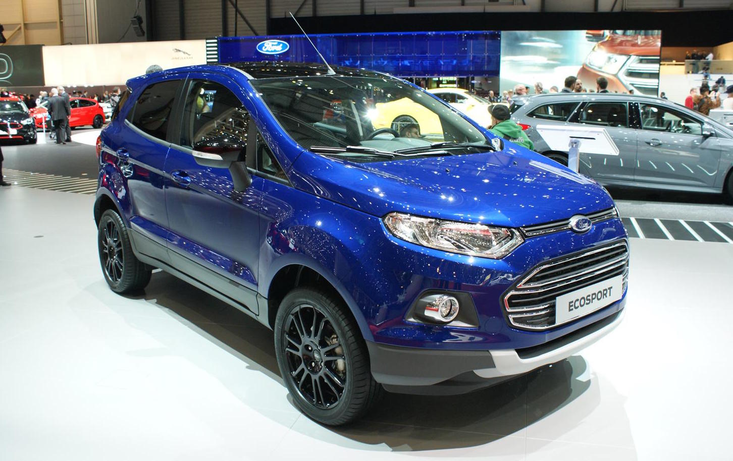 Ford ha presentato la nuova EcoSport senza la sua ruota di scorta montata nel retro. Avvistato a fine 2014 in fase di test, il crossover presenta un aspetto più gradevoli grazie alla rimozione della ruota di scorta ed è affiancato una variante più top di gamma EcoSport S. Mostrata allo show svizzero in tinta blu Deep Impact, questa versione dispone di cerchi in lega 17 pollici, tetto oscurato, calotte degli specchietti, vetri privacy e diffusori posteriori.