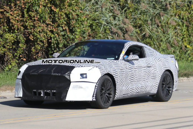 Probabilmente, viste le copiose coperture, c’è motivo di pensare che anche entrambi i paraurti siano sottoposti ad un lieve lifting così come la griglia della calandra che potrebbe riservare piccole novità. Il restyling di metà carriera della Ford Mustang potrebbe anche essere l’occasione per presentare nuovi pacchetti di accessori ed inedite versioni speciali da vendere in serie limitata agli appassionati dell’iconica sportiva americana.