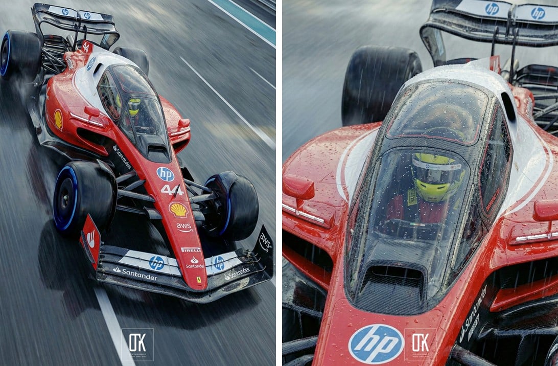 La F1 “chiusa” che vediamo in questo render nasce con l’idea di eliminare del tutto il rischio derivante dall’ingresso nell’abitacolo dei piccoli detriti della pista, quegli elementi che un tradizionale Halo non è in grado di intercettare completamente. Nella concezione del suo autore, questo concept di monoposto prevede un tettuccio composto da un telaio interno in titanio unito a una struttura esterna in fibra di carbonio. Questa combinazione, spiega il designer che l’ha ideata, consente di ottenere la massima integrità strutturale mantenendo un peso estremamente contenuto, un aspetto cruciale per le prestazioni in pista della Formula 1.