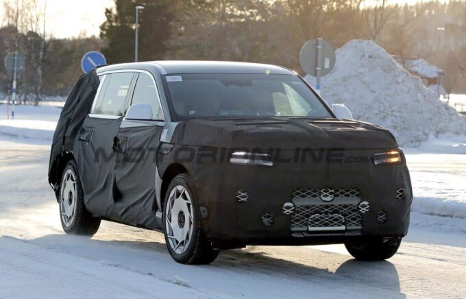 Il prototipo Genesis GV90 è stato immortalato in una serie di foto spia che lo hanno ripreso mentre era impegnato in sessioni di test sulla neve del Nord Europa, e durante i quali è stato anche protagonista di un imprevisto uscendo di strada e finendo un fosso, rimanendo bloccato sul cumulo di neve presente sul margine della strada.