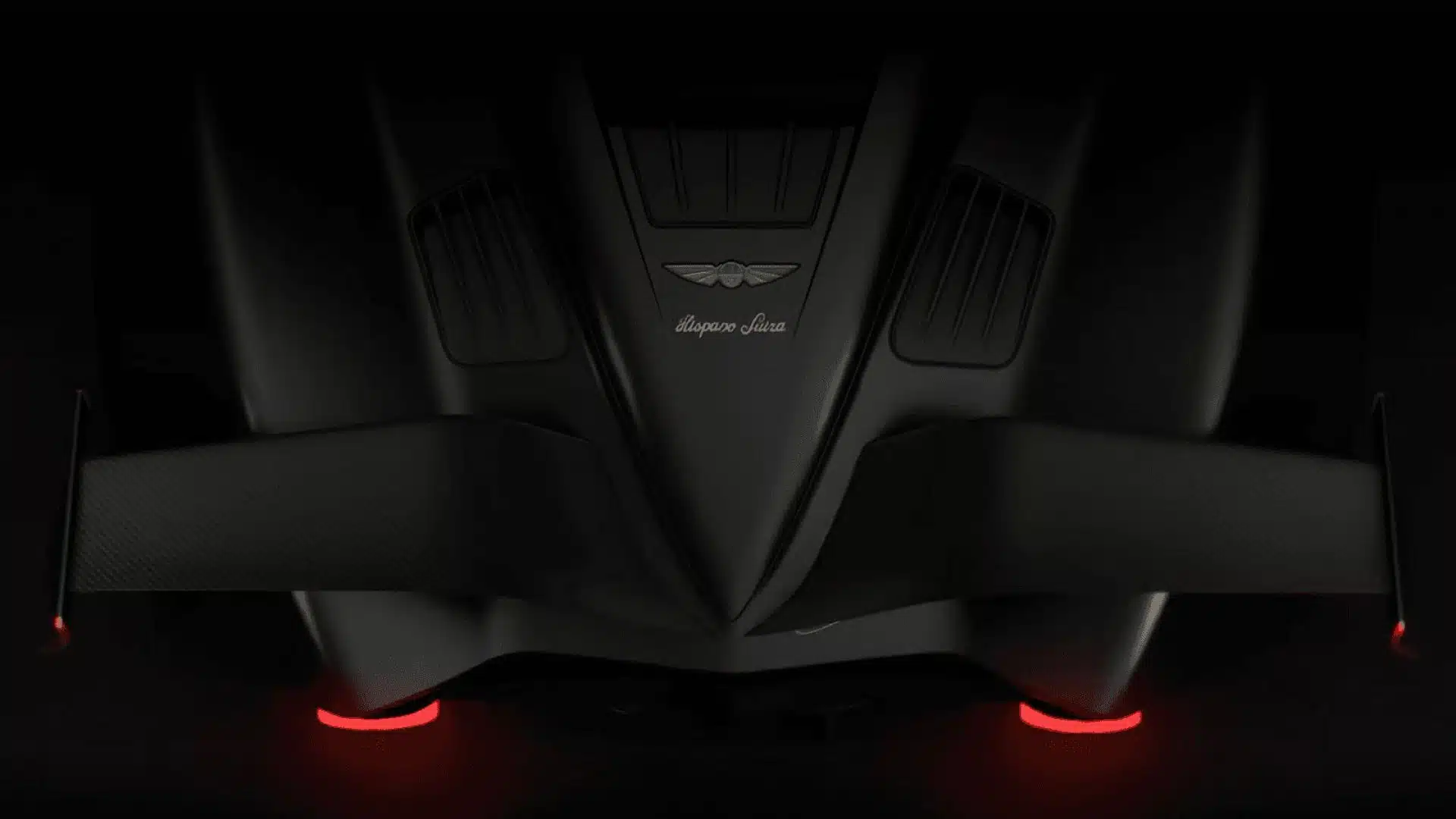 Un elemento chiave del design di Carmen Sagrera è l’enorme ala in fibra di carbonio, un dettaglio che il marchio descrive come ‘‘una vera e propria dichiarazione di intenti’’. Il video teaser mostra l’ala divisa al centro da un affilato codone che costituisce la spina dorsale della carrozzeria, e che rappresenta uno dei più importanti richiami ai modelli Hispano Suiza originali.