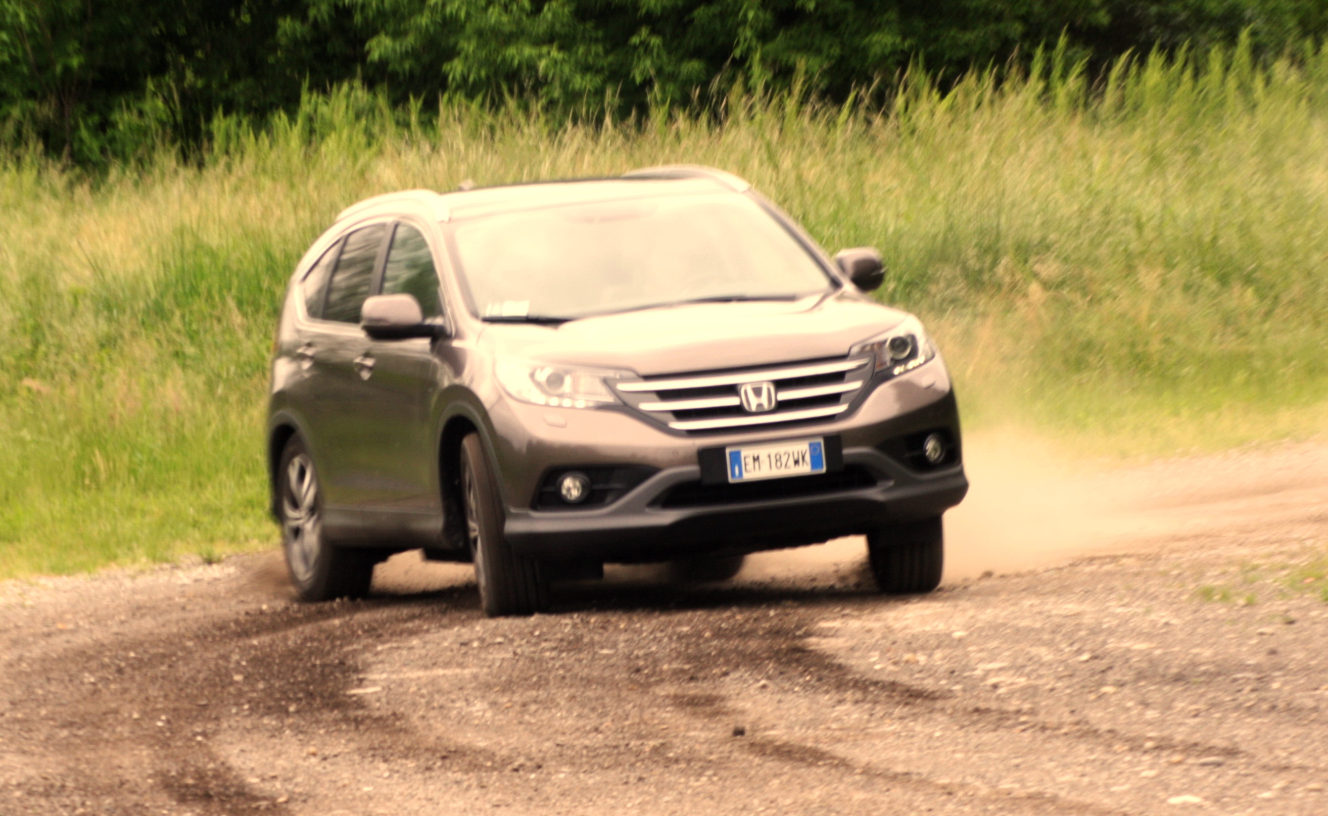 La nuova CR-V stupisce innanzitutto per la comodità. Assorbe le sconnessioni in maniera sempre gentile, ed il propulsore si mantiene sempre molto silenzioso. Per di più il cambio automatico assicura una guida sempre fludia, con passaggi di marcia molto morbidi. Insomma, questa CR-V fa venire voglia di viaggiare, a maggior ragione se quando imbocchi l’autostrada scopri una miriade di dispositivi che consentono alla vettura di andare praticamente “da sola”, oltre a rendere la guida notevolmente più sicura. Partiamo dal dispositivo (CMBS) che t’avvisa del pericolo di un’imminente collisione, prima visivamente ed acusticamente, e poi frenando in automatico la vettura. C’è poi il cruise control adattivo (ACC), che mantiene la velocità e la distanza di sicurezza dal veicolo che precede, ed infine il sistema di mantenimento della corsia (LKAS). Il risultato? Con il cruise impostato ed il Lkas attivo, anche togliendo per qualche istante le mani dal volante, la vettura procede praticamente da sola, correggendo automaticamente la traiettoria per restare dentro la propria corsia di marcia. Ma ovviamente, non appena si tolgono le mani dal volante, è il sistema stesso a capire la situazione, invitando il guidatore a ritornare ad adottare una condotta “responsabile”, pena la disattivazione di tutti i sistemi. Per il resto la CR-V, oltre che per la comodità, si fa apprezzare anche per una buona agilità, tanto da non risultare impacciata neanche in città. Non si tratta, però, di una vettura dal piglio sportivo. Lo sterzo infatti è sempre molto leggero, e non brilla per comunicatività. Quando si esagera con la velocità poi, emergono un certo rollio e sottosterzo, che ti avvisano che stai chiedendo alla vettura di far cose per cui non è stata pensata. Abbiamo anche provato ad avventurarci su uno sterrato “leggero”, con risultati molto interessanti.