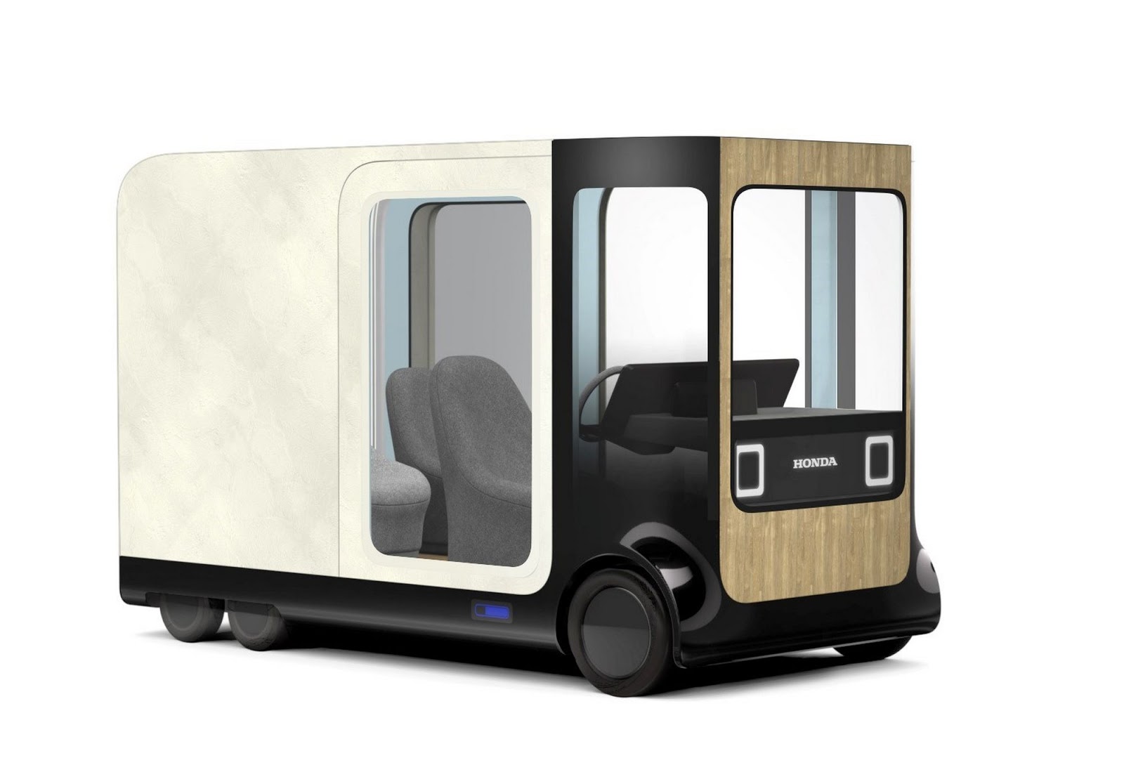 Ultimo Concept di casa Honda è il le-Mobi Concept, la creazione che più assomiglia ad una vera auto. Casa e auto si incontrano per la prima volta: 5 metri quadrati di spazio a disposizione. Il design risulta minimalista con un monitor a gestire la strumentazione e il volante per regolare la direzione. Eccezionale l’utilità di carica: veicolo completamente elettrico che consente di usare il veicolo come batteria di emergenza per la casa (la comunicazione è bidirezionale casa-auto e viceversa).