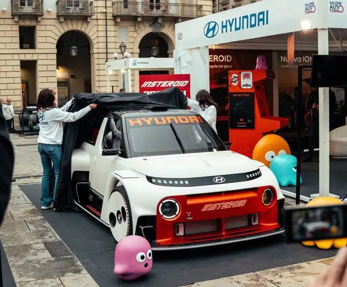 Una doppia novità con la quale Hyundai, come raccontato da Giulio Marc D’Alberton, responsabile PR & Event di Hyundai Italia, ha messo in mostra due vetture molto diverse tra loro, due auto “che forse rappresentano gli estremi del marchio“. Da un lato c’era la Insteroid, una visionaria e audace concept car che si presenta come una compatta tutta grinta e carattere che reinterpreta il concetto di sportività e dinamismo traendo ispirazione dal mondo dei videogames.