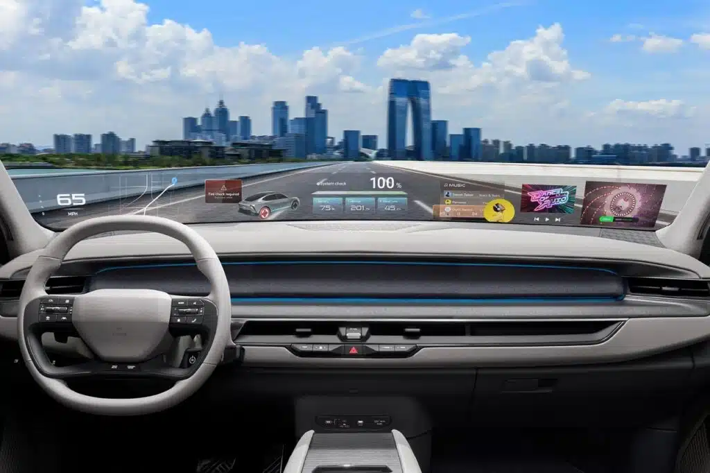 Le immagini proiettate sul parabrezza sono dinamiche e permettono di visualizzare in tempo reale informazioni di navigazione e di sicurezza per il conducente, oltre a contenuti multimediali come filmati, videochiamate e altro per il passeggero. In collaborazione con Zeiss, Hyundai prevede di implementare il parabrezza olografico sui veicoli di produzione a partire dal 2027.