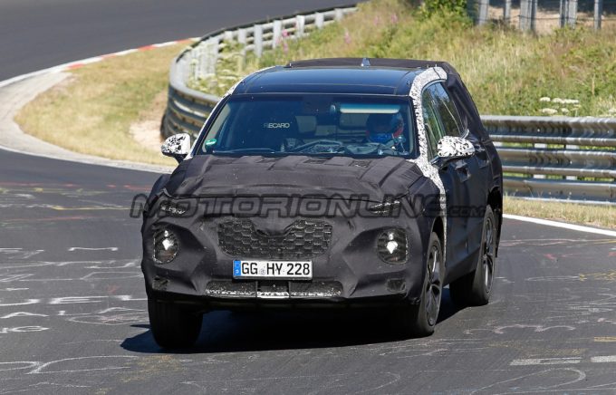 Dopo l’ultimo aggiornamento ricevuto nel 2013, la Hyundai Santa Fe sta preparando la nuova generazione come testimoniano le nuove foto spia che hanno beccato il prototipo durante i test sulla pista del Nürburgring. La nuova Santa Fe è attesa con un’importante evoluzione sotto ogni punto di vista per poter reggere al meglio il confronto con la concorrenza, in primis quella di Toyota e Honda.