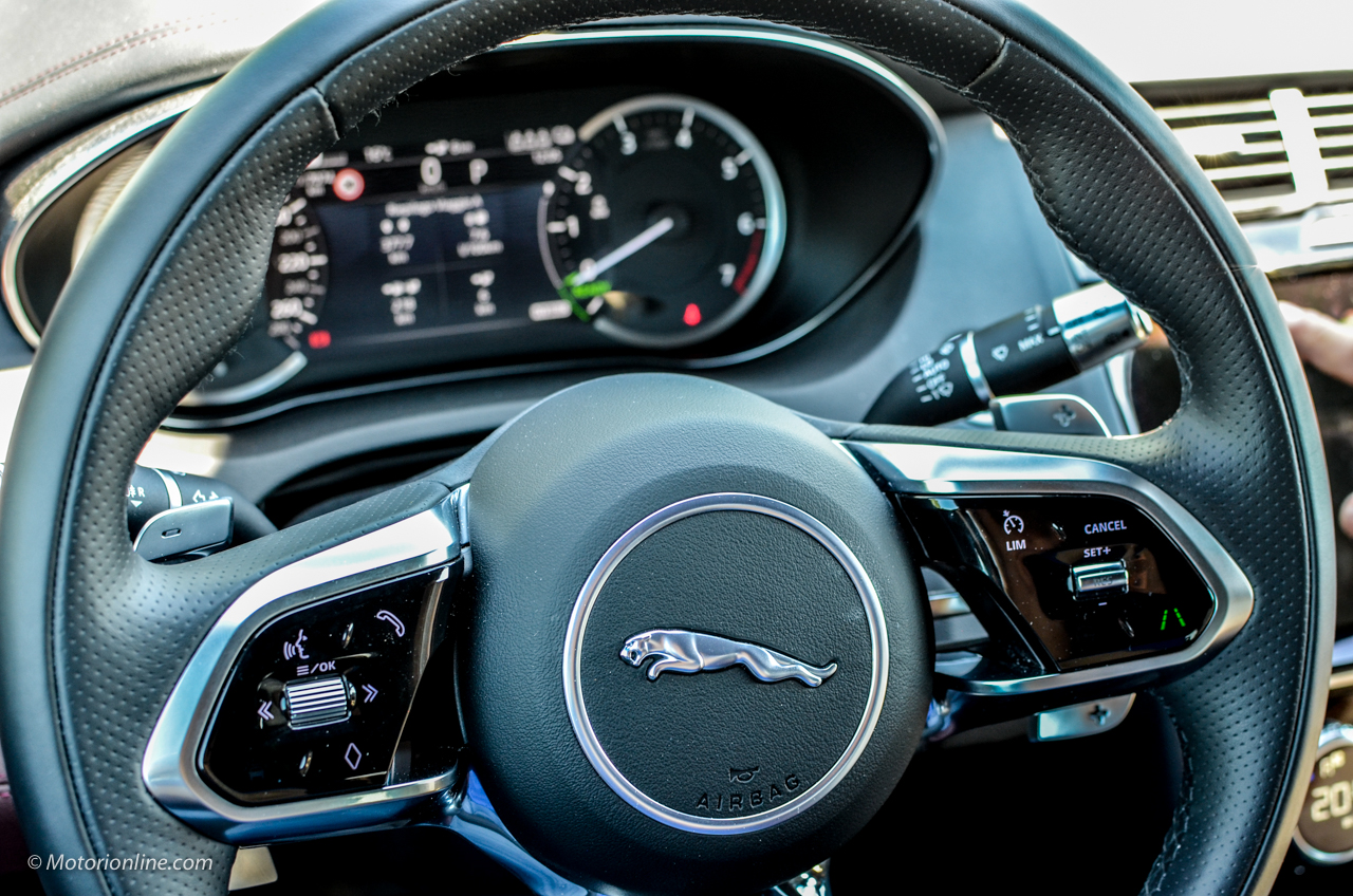 L’allestimento di questa Jaguar E-Pace in prova è il P300e e prevede la combinazione di un motore endotermico ad uno elettrico. Insieme, i due motori erogano una potenza alla ruota di 309 CV a 5500 giri al minuto, l’enorme coppia viene gestita da un rapporto automatico a 8 rapporti a cui si può dare una impostazione più sportiva o confortevole a seconda del proprio stile di guida. L’autonomia dichiarata per il solo utilizzo della carica delle batterie è di circa 60 Km, esaurita questa riserva subentra il tre cilindri turbo benzina. Attraverso una leva sulla plancia centrale si possono selezionare diversi riding mode: si passa da Full electric, ad Hybrid ed infine è presente la modalità Save, che permette di mantenere la percentuale della batteria costante, preservandola. I consumi dichiarati dalla casa madre si aggirano attorno ai 1.5 l/100 km in combinato in un ciclo standard (WLTP) mentre nell’utilizzo misto della nostra prova, sfruttando anche spesso il motore endotermico i consumi sono arrivati a toccare i 10 l/100km. Queste cifre possono spaventare ma bisogna considerare che questa è una macchina il cui peso in ordine di marcia si aggira attorno ai 2700 kg, si tratta solamente di sfruttare in modo corretto la parte di propulsione elettrica.