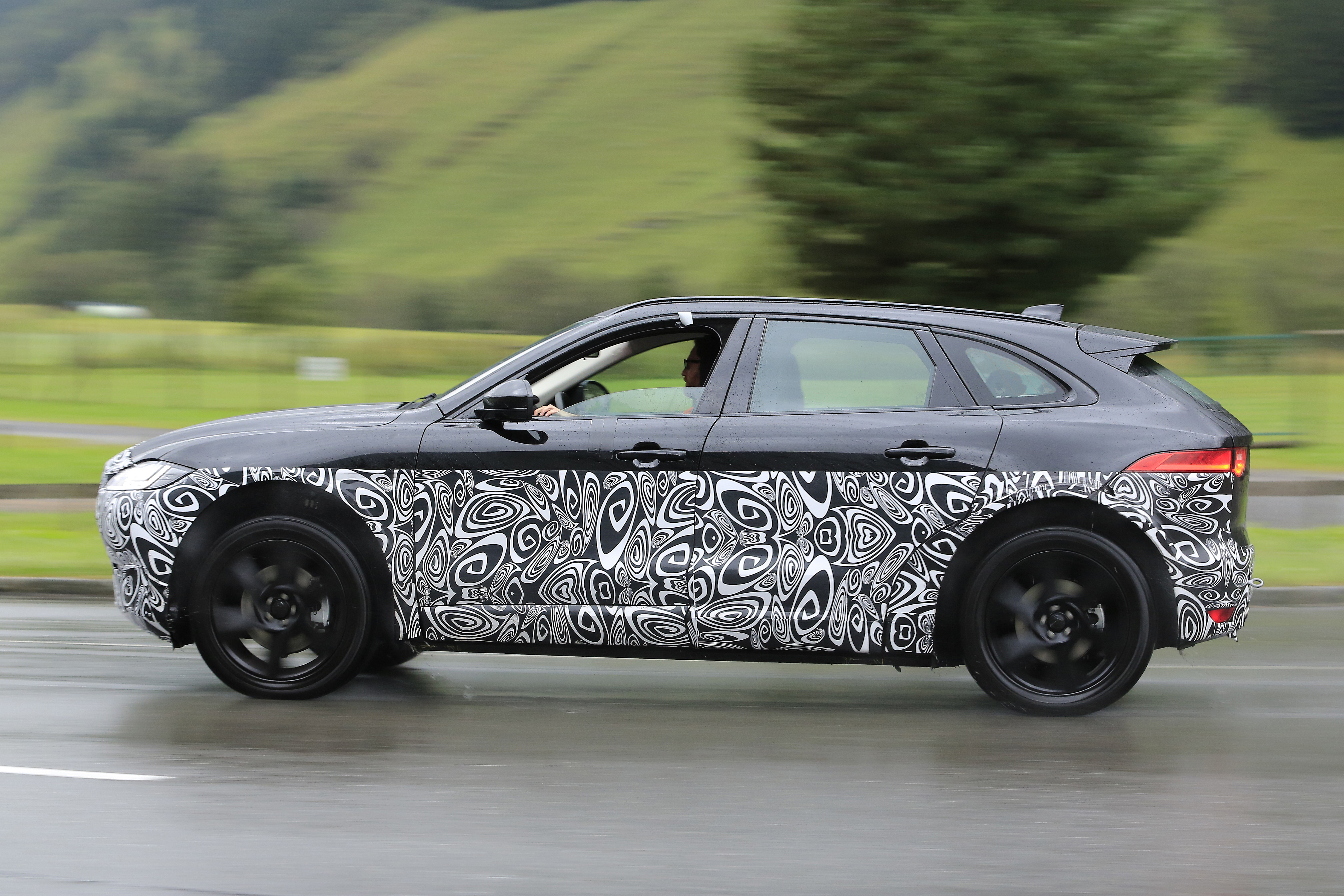 Jaguar J-Pace – Le numerose foto che potete vedere nella nostra galleria ritraggono un esemplare particolare di Jaguar F-Pace o meglio ritraggono quello che a prima vista potrebbe sembrare un F-Pace, ma che in effetti non è. Difatti a guardarlo con maggiore attenzione, rispetto al primo suv marchiato Jaguar, l’esemplare fotografato risulta avere delle proporzioni differenti, uno sbalzo posteriore decisamente più corto ed un’altezza da terra minore. Inoltre sembra anche che gli ampi passaruota siano decisamente più ampi del normale e non consoni all’esemplare in oggetto.