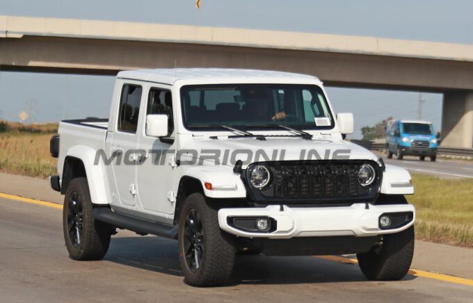 Il prototipo della nuova Jeep Gladiator immortalato durante i test ha carrozzeria bianca ed una serie di dettagli stilistici esterni che suggeriscono che possa trattarsi dell’allestimento High Altitude.