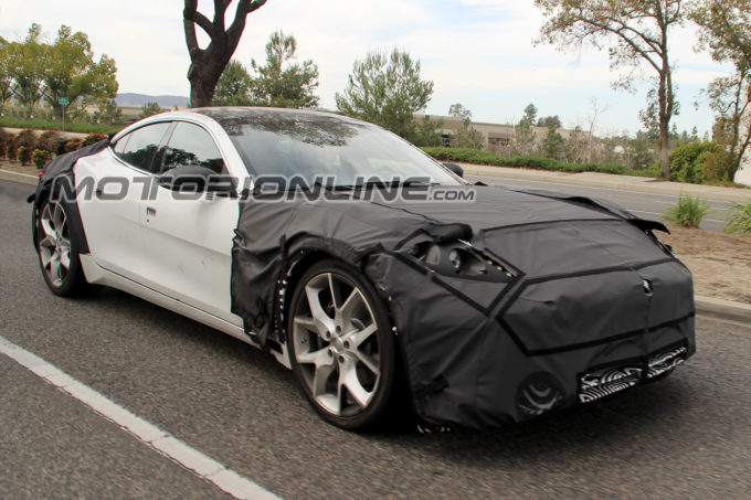 A distanza di circa due anni dalla presentazione della nuova Karma Revero sono arrivate in redazione alcune foto spia che testimoniano come la sportiva berlina ibrida stia per ricevere un restyling: immortalato sulle strade della Costa Mesa in California (dove c’è il centro di ricerca e sviluppo della Karma), il muletto della versione ristilizzata appre visibilmente coperto da numerose camuffature che interessano il frontale e la coda, segno evidente che in Karma sembrano alquanto decisi a dare un tocco diverso allo stile della nuova berlina in modo tale da discostarsi dal disegno originale di Henrik Fisker.