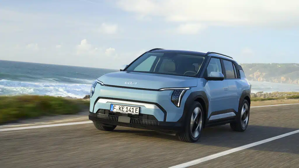La Kia EV3 (qui la nostra prova in anteprima) è il nuovo SUV compatto a zero emissioni, con un disegno distintivo, a partire dal frontale con il classico ‘Tiger Face’ del marchio coreano ed i fari a sviluppo verticale. Sono inediti i passaruota quadrati, con cerchi da 19 pollici, della EV3, così come nel posteriore troviamo un lungo tetto spiovente e fari con design distintivo. L’abitacolo propone elementi in plastica riciclata ed un triplo schermo digitale per quadro strumenti, infotainment e clima.