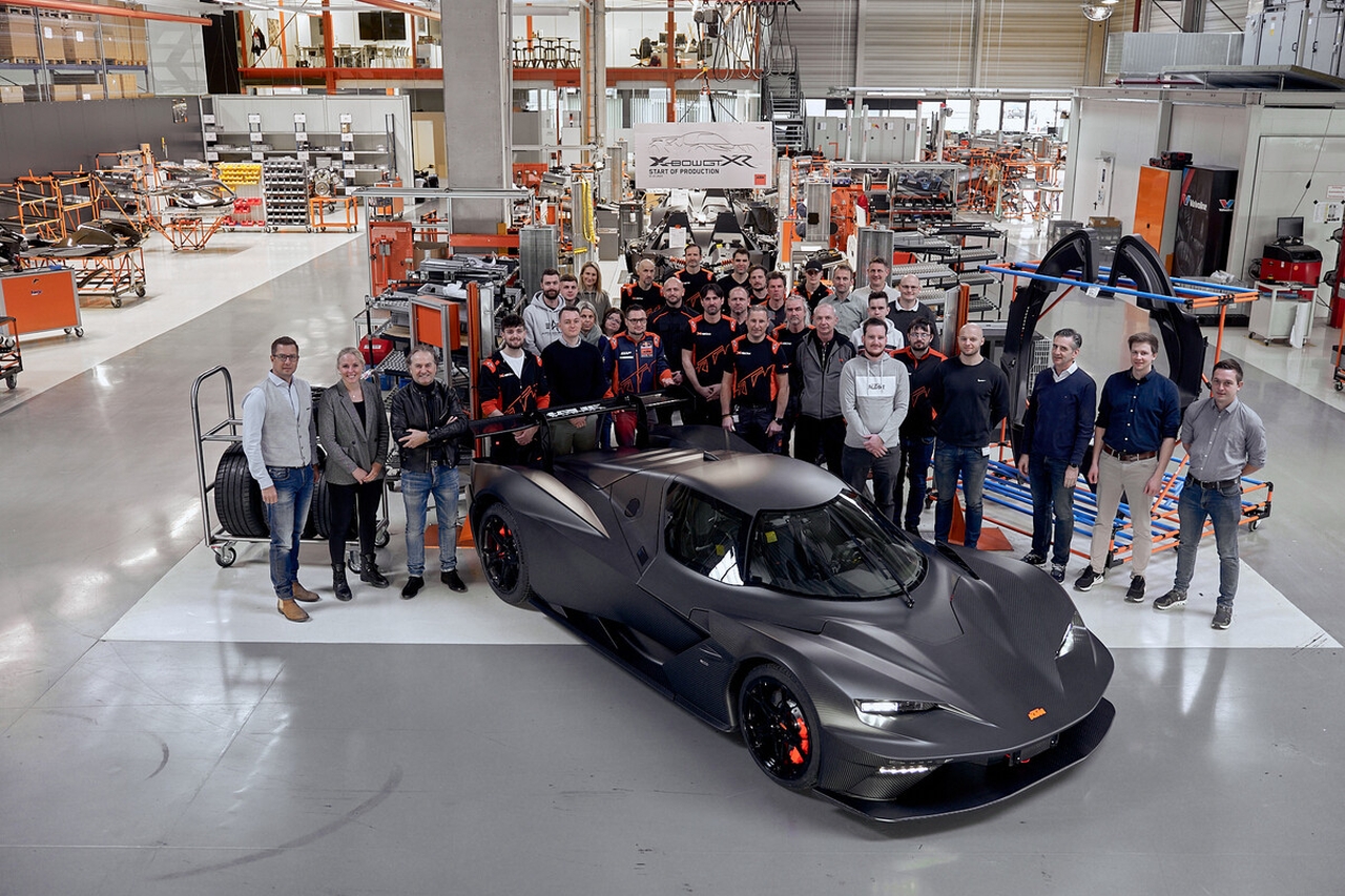 Il 31 gennaio 2023 è partita, nello stabilimento KTM di Graz (Austria), la produzione della nuova KTM X-BOW GT-XR. Il primo esemplare è uscito dalla linea di produzione proprio ieri, martedì 14 febbraio 2023, alla presenza di Stefan Pierer – CEO di Pierer Mobility AG – e Hubert Trunkenpolz – membro del Consiglio di Amministrazione di KTM AG.