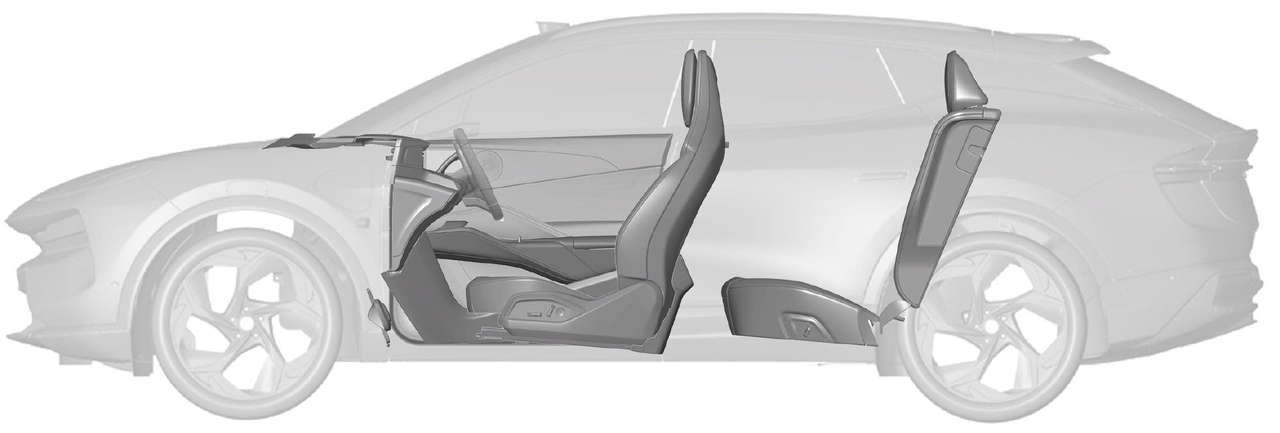 Purtroppo, la documentazione del brevetto non ha riportato la diagonale dello schermo, ma molto probabilmente potrebbe essere di 15 pollici. Con un display così grande, molto probabilmente il nuovo Type 132 avrà pochissimi pulsanti fisici, quindi la maggior parte delle funzionalità potrà essere gestita attraverso il pannello dell’infotainment.
