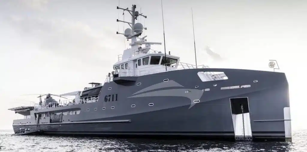 Ha un'autonomia di 4.500 miglia nautiche ed un eliporto