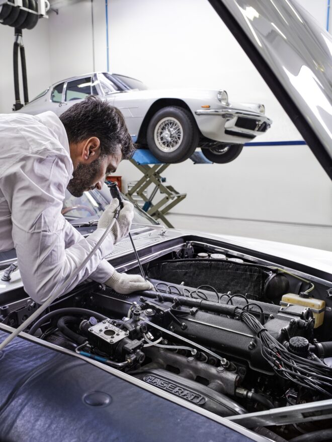 L’esclusivo servizio di assistenza, dedicato a clienti e collezionisti del marchio, permette di ottenere la certificazione di autenticità. Come detto, il primo modello ad essere certificata dal programma Maserati Classiche è una Mistral 3700 con carrozzeria Argento Auteuil e costruita nel marzo del 1969. Al fine dell’ottenimento dell’attestato di originalità la vettura è stata sottoposta ad un accurato e scrupoloso processo di verifica con oltre 300 operazione di controllo e di confronto con la documentazione in possesso dell’Archivio Storico di Maserati.