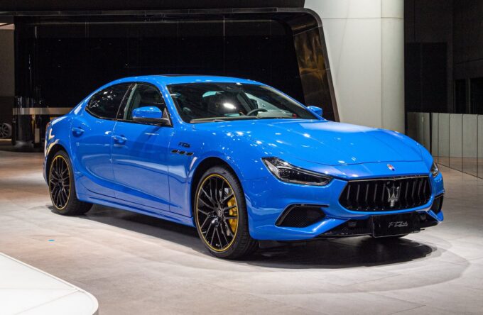 Le versioni F Tributo delle Maserati Ghibli e Levante vengono proposte nelle esclusive tinte esterne Rosso Tributo e Azzurro Tributo (quella della Ghibli in foto), con la berlina e il SUV del Tridente che montano cerchi da 21 pollici in titanio nero lucido con profilo giallo, come gialle sono anche le pinze dei freni. Gli interni delle versioni F Tributo sono personalizzati con rivestimenti in pelle impreziositi da cuciture che riprendono l’esclusivo colore della carrozzeria.
