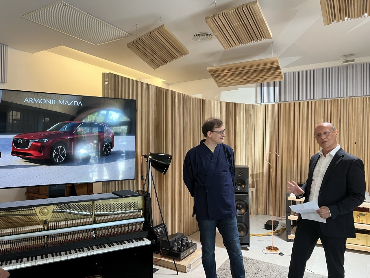 La cura maniacale nella costruzione dei modelli Mazda passa anche per l’impianto audio, tanto che ad Hiroshima, Koji Wakamatsu sfrutta una sala audio per studiare la riproduzione del suono nell’abitacolo delle vetture del brand. Vicino Roma, invece, il maestro Igor Fiorini, nel suo studio perfettamente insonorizzato con pannelli provenienti dal Giappone e indossando un Kimono da lavoro, ha creato i file MANS, che rappresentano uno strumento con cui è possibile analizzare rapidamente la corretta riproduzione di un impianto audio. Infatti, si tratta di note e brani di pianoforte in formato master DXD ad altissima risoluzione che consentono di individuare le caratteristiche timbriche e di ricostruzione spaziale di un impianto audio.