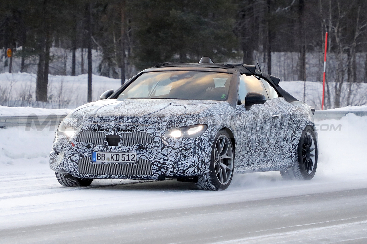 Di recente sono trapelati in rete vari prototipi della CLE convertibile in diverse occasioni, ma in queste esclusive foto spia vi mostriamo un presunto muletto completamente camuffato della Mercedes-AMG CLE 63 2023.