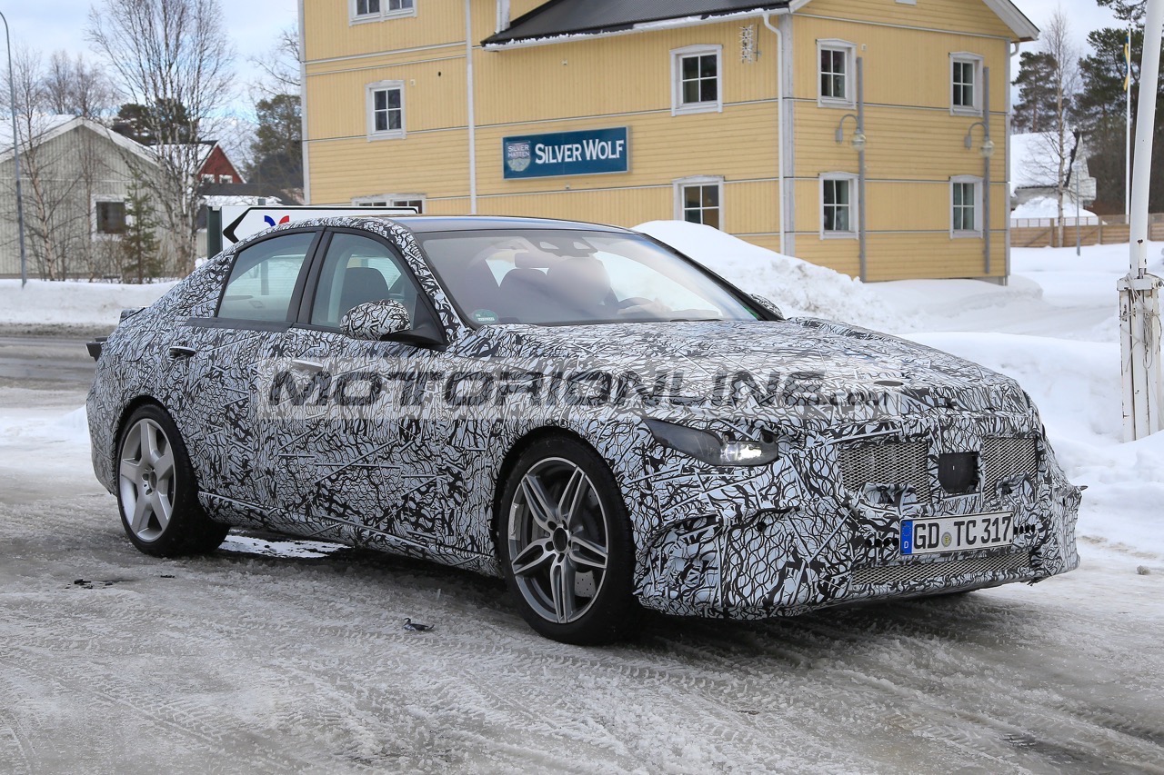 Ci sono ancora pesanti coperture, ma è possibile dare un primo sguardo a come sarà questo rinnovato modello. Non dovrebbero esserci rivoluzioni nello stile, un po’ ripercorrendo quanto stiamo vedendo nelle anticipazioni della nuova Classe C, ma qualche aggiornamento. Saranno soprattutto i gruppi ottici ad avere qualche novità, mentre nel posteriore si notano i terminali di scarico ovali.