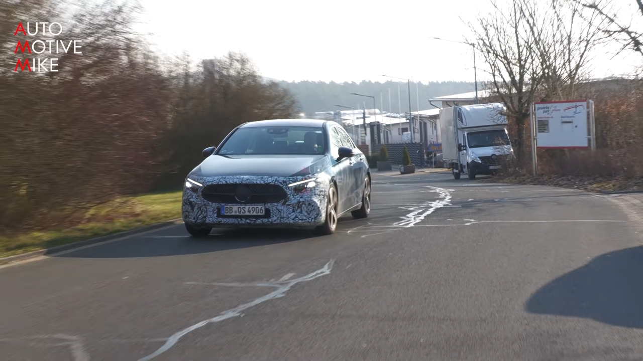 Qualche giorno fa vi abbiamo proposto in anteprima alcune foto spia esclusive che mostravano una carovana di prototipi della Mercedes Classe A 2023. Ora, un video spia pubblicato su YouTube da Automotive Mike rivela un muletto semi-camuffato in versione berlina mentre sfrecciava fra i cordoli del famoso circuito del Nurburgring.