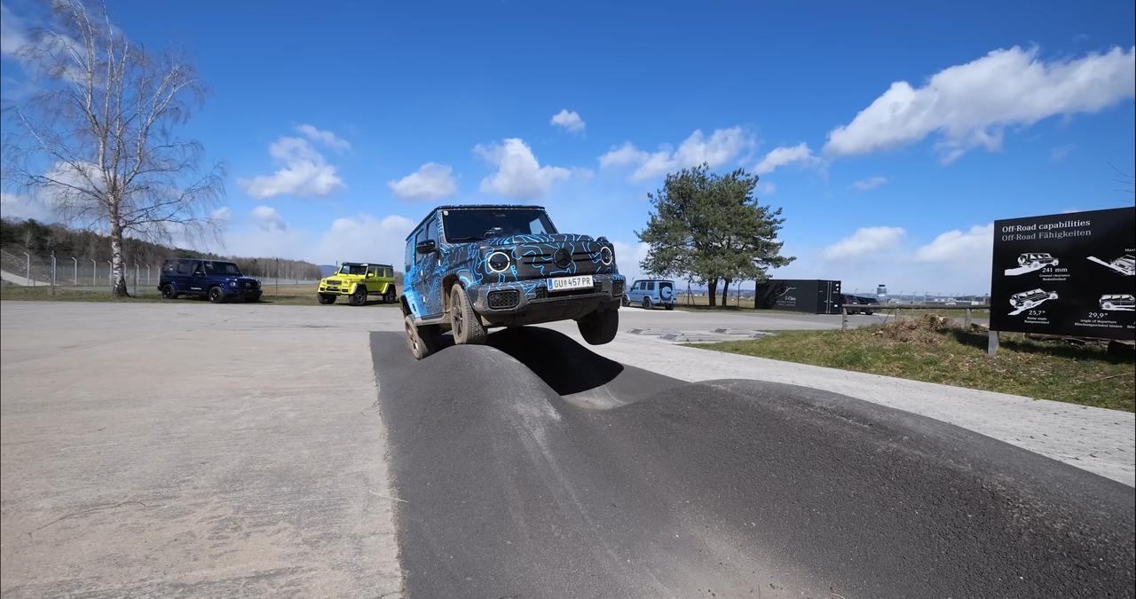 Un nuovo video pubblicato su YouTube da JerryRigEverything mostra un prototipo camuffato dell’EQG mentre effettua alcuni test presso il G-Class Experience Center di Graz (Austria). Anche se si tratta soltanto di un muletto, possiamo vederlo in azione mentre supera scale e rocce senza alcun tipo di problema. Sfrutta anche la nuova funzione G Turn per girare su sé stesso come se fosse un carro armato.