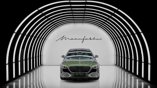 Tanto lusso in vista anche per viaggia dietro, con intarsio dorato dell’emblema Mybach, con la medaglia e il “12” dentro 12 cerchi dorati, sulla console centrale posteriore, per una lavorazione che richiede fino a sette giorni lavorativi. A bordo c’è spazio anche per due calici da champagne d’argento di Robbe & Berking con incisione specifica, oltre al tappetino del bagagliaio con profilo in Saddle Brown e a chiavi e portachiavi in una pregiata scatola regalo realizzata a mano.