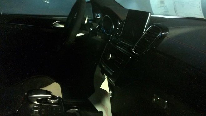 Questa è la prima volta che siamo in grado di dare un’occhiata all’interno della MLC AMG. Notiamo una configurazione degli interni con un grande display del sistema di infotainment integrato nella consolle centrale.