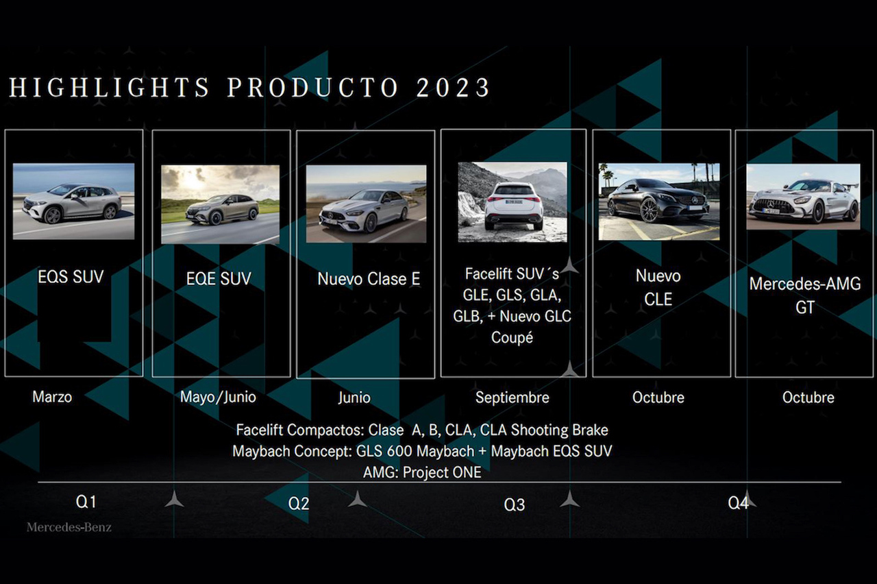 I vari mesi menzionati molto probabilmente si riferiscono alle date di vendita in Spagna. Ad esempio, possiamo vedere che il Mercedes EQS SUV è in arrivo questo mese mentre l’EQE SUV per maggio o giugno. C’è anche la nuova Mercedes Classe E, le cui vendite dovrebbero partire a giugno.