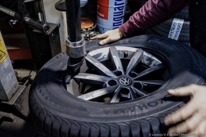 Da qualche giorno le nostre auto sono, per legge, dotate di pneumatici invernali o comunque omologati per la stagione più fredda. Un cambiamento dettato non da un semplice “vezzo”, ma da una necessità di sicurezza ben precisa. Le gomme infatti sono l’unico punto di contatto tra la nostra vettura e il manto stradale, per cui la loro perfetta efficienza e la loro cura sono degli elementi fondamentali per la nostra stessa integrità. Abbiamo già parlato diverse volte delle caratteristiche che dovrebbe avere una gomma per rispondere a determinate necessità, ma questa volta vogliamo parlare di un argomento forse più oscuro e segreto. La maggior parte di noi, infatti, è abituata a lasciare la propria auto dal gommista e attendere qualche ora prima di ritirarla con le gomme perfettamente montate. Come fa, però, a levare dai cerchioni degli pneumatici in grado di reggere più di una tonnellata di auto? Non basta certo lavorare a mani nude. Siamo andati all’Autofficina Bertuletti & Bigoni, a Mediglia in provincia di Milano, per farci mostrare quali sono i vari procedimenti su delle gomme Yokohama BluEarth Winter V905 (l’autofficina fa parte del network ufficiale del marchio nipponico).
