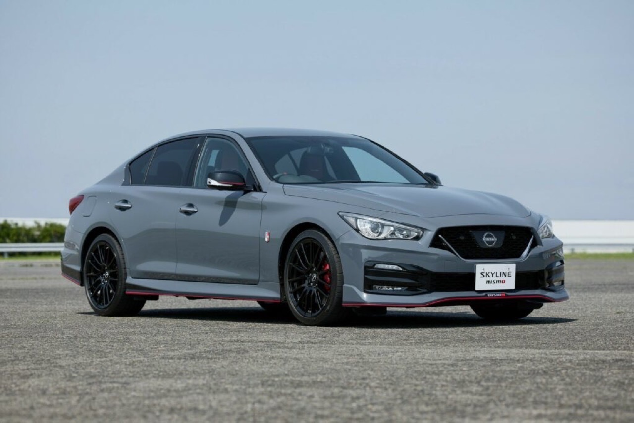 Partendo dal lato estetico, la Nissan Skyline Nismo propone paraurti anteriore e posteriore rivisti con accenti rosso vivo, stemmi Nismo, fendinebbia ed una griglia anteriore modificata, per massimizzare il raffreddamento. Inoltre, la casa giapponese l’ha equipaggiata con cerchi Enkei da 19 pollici e sospensioni e stabilizzatori messi a punto per ridurre il rollio ed ottimizzare la trazione.