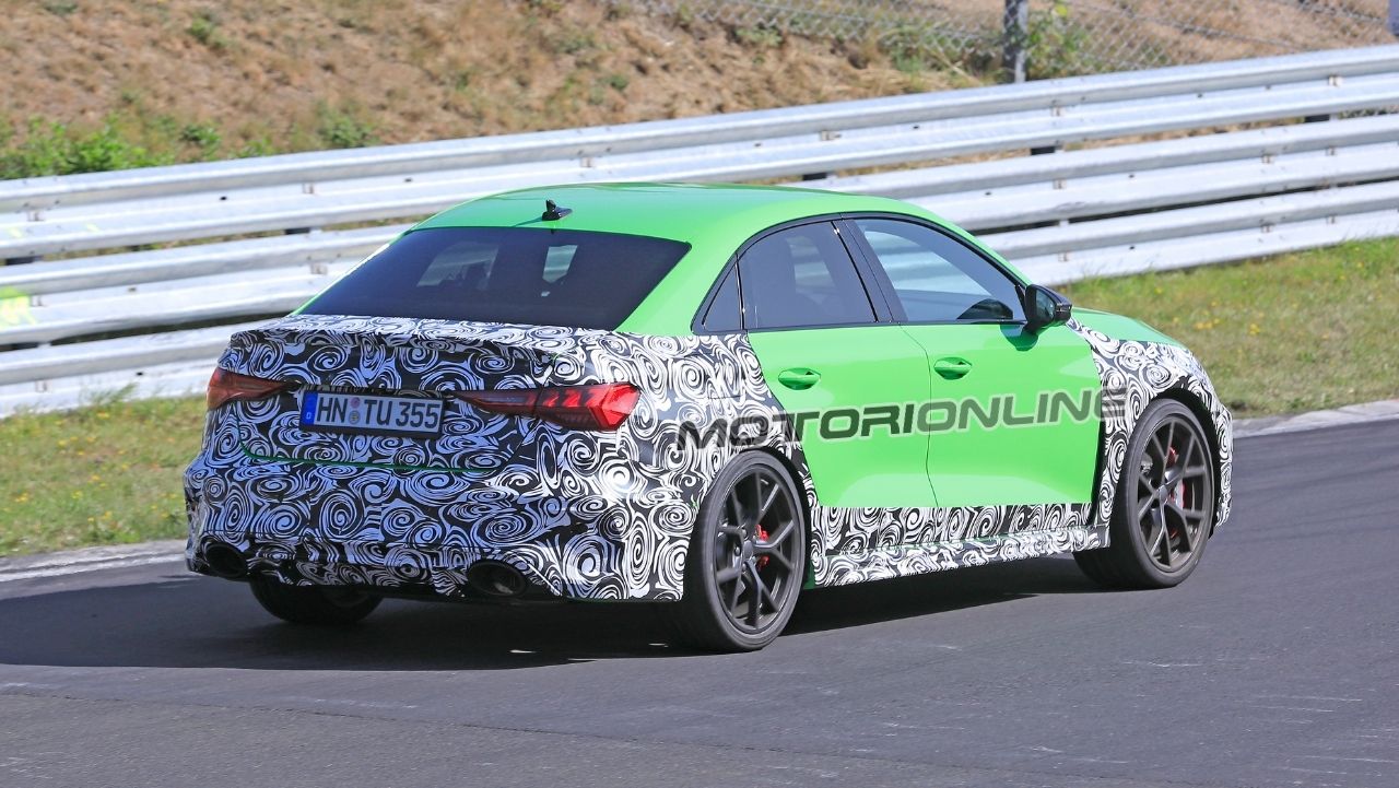 Audi RS3 2020: la versione Sedan al Nurburgring con meno camouflage [FOTO SPIA]