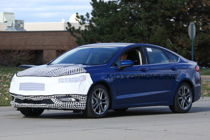 Sulle strade del Michigan il nuovo model year della Ford Mondeo sta portando avanti i test come ci testimoniano queste nuove foto spia scattate negli States. La berlina dell’Ovale Blu è stata immortalata quasi completamente priva di coperture, ad eccezione del frontale, vale a dire dove si concentreranno buona parte delle novità estetica previste dal facelift del modello.
